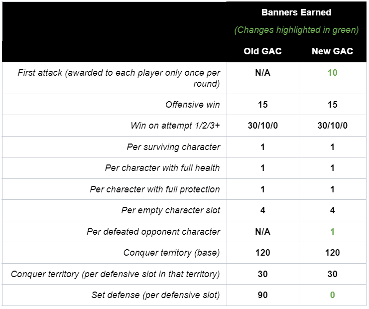 プレイヤーが特定のGPに到達するには、様々な方法があることに注意してください。あるプレイヤーは非常に幅広いロースターを持っているかもしれませんし、別のプレイヤーは銀河レジェンドを持つ合理的なロースターを持っているかもしれません。そのため、これまでのGACでは、プレイヤーがミスマッチな対戦相手に直面することがありました。今回のGACでは、スキルレーティングが時間の経過とともに急速に更新され、よりバランスのとれた戦いが可能になります。ただし、バランスをとるためには、何度かプレイしていただく必要があります。