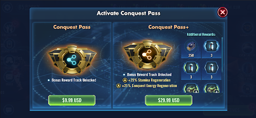 征服の次はイージーモードです。イージーモードは、レベル85のプレイヤー全員が征服に参加できるようにすることを目的としています。ノーマル難易度で勝利を得られなかったプレイヤーにふさわしい冒険になるように作り直されています。これまでの征服で「ノーマル」や「ハード」に参加したことがある方は、「イージー」に挑戦する必要はありません。 ハードモードのもう一方の端には、新しい特別な道がマップに追加されています。この道を通ると、データディスクが追加されたり、報酬が増えたりします。なお、この道はいつでも抜けることができますが、入ることができるのは各マップの開始時のみです。 征服10では、スペシャルイベントパスが販売されます。Conquest Passには、さらに多くの報酬を含む追加の報酬トラックが含まれています。これらの報酬には、旅の途中でいくつか見逃してしまったプレイヤーのための追撃や、征服通貨の一部を他の場所で使いたいプレイヤーのための征服キャラクターの欠片が含まれています。(なお、征服を3回プレイする前に、ユニークな征服ユニットを解除することはできません。) Conquest Pass+は、通常のConquest Passと同じボーナス報酬トラックを提供しますが、このConquestをマスターするのに役立つ他の特典も含まれています。 スタミナのリチャージ率のボーナス 征服エナジーのチャージ率アップ データディスクの無料交換 これらの変更に加えて、マップのバランスや構造についてもいくつかのアップデートを行いました。偉業に関する皆様のご意見をお聞きし、本マップの構成は全体的にコンバットノードが多く、偉業の重要性が低いものに変更されます。 銀河を舞台に活躍する準備はできていますか?征服10は11月1日にスタートします 銀河の英雄は6周年を迎えました。 †最後になりましたが、11月21日に銀河の英雄の6周年を迎えます。いつものように、新しいタイトルやポートレートに加えて、楽しいグッズが入った特別なインボックスを用意しています。また、カンティーナの様々な場所で数日間のダブルドロップを行い、さらに多くの装備品やかけら、その他のリソースを提供する無料のログインカレンダーを用意しています。 ダブルドロップの日程